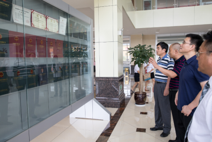 雷兴红董事长向国家工信部工业和信息化部中小企业局叶定达副局长等领导介绍公司获得的专利。